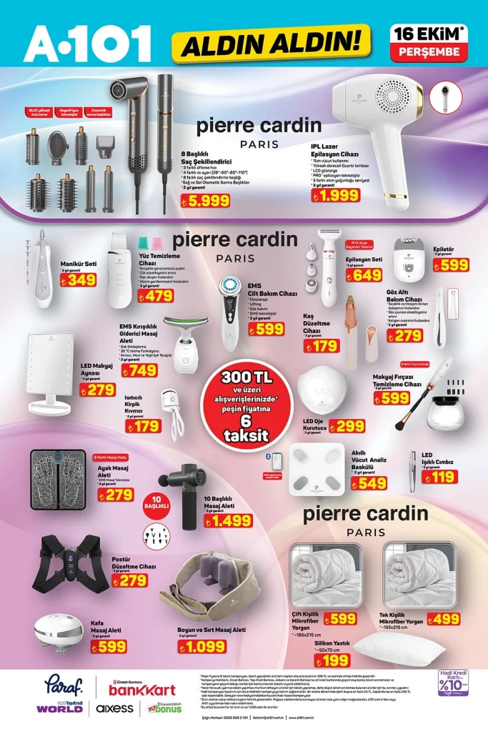 A101 Aldın Aldın aktüel ürünler kataloğu 16 Ekim – 22 Ekim 2025 tarihleri arasında geçerlidir. 14 sayfalık A101 broşüründe gıda, temizlik, elektronik, TV, mutfak ürünleri, bebek eşyaları ve elektrikli taşıtlardan onlarca üründe kampanyalı fiyatlar sizi bekliyor. Güncel A101 indirimlerini ve fırsatlarını kaçırmayın!