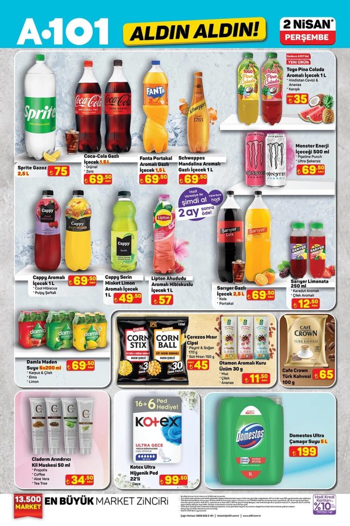A101 2 – 8 Nisan Aldın Aldın kataloğunda temel gıda, süt ürünleri, atıştırmalıklar, mobilya, züccaciye ile kamp ve balıkçılık malzemelerinde indirimli fiyatları hemen inceleyin!