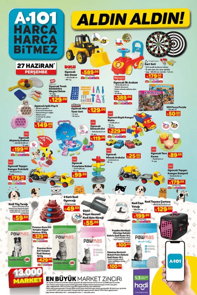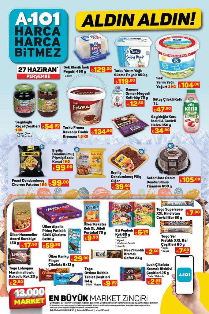 A101 “Aldın Aldın” broşürü 27 Haziran – 3 Temmuz 2024 tarihlerinde tüm A101 marketlerde geçerlidir. Aktüel ürünler kataloğu 12 sayfadan oluşmaktadır.