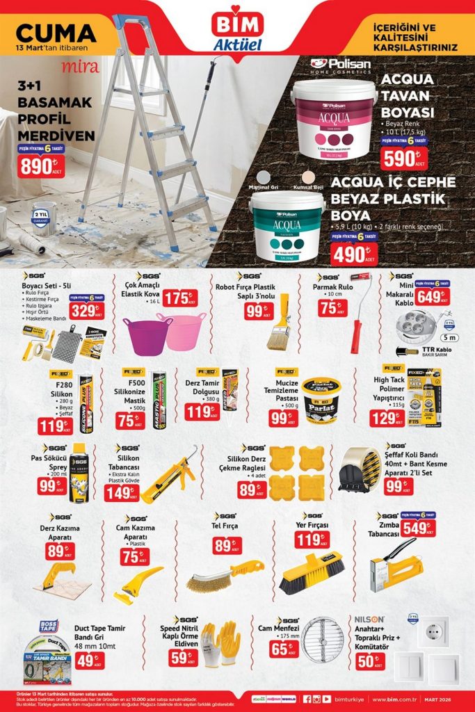 BİM 13 Mart aktüel kataloğunda dev indirimler! Boya ve hırdavat malzemeleri, şık züccaciye ürünleri, akıllı telefonlar, akıllı televizyonlar ve elektrikli ev aletlerindeki cazip fiyatları hemen inceleyin.