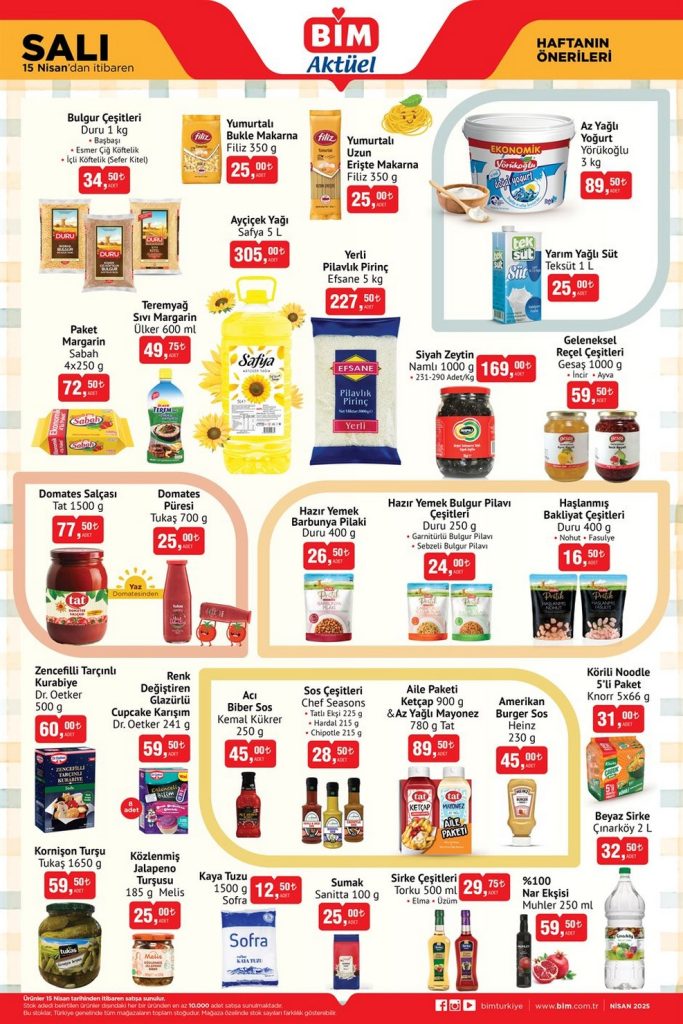 BİM 15 Mart Nisan Aktüel Ürünler Kataloğu Yeni BİM Aktüel Ürünler broşürü 15 – 21 Nisan 2025 tarihleri arasında tüm BİM marketlerde geçerlidir. Aktüel Ürünler Kataloğu 3 sayfadan oluşmaktadır.