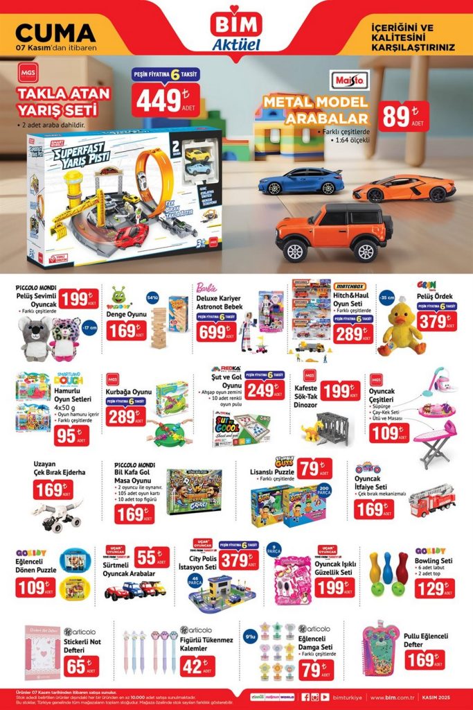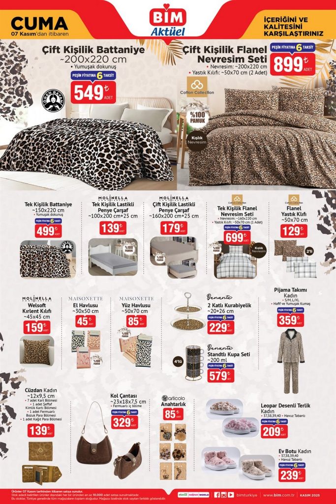 BİM 7 Kasım Cuma Aktüel Ürünler broşürü 7 sayfadan oluşmaktadır. 7 Kasım–13 Kasım 2025 tarihleri arasında geçerli olacak indirimler tüm BİM marketlerde geçerlidir. Bu haftaki katalogda mutfak eşyalarından, elektronik ürünlere, giyimden, ev tekstiline ve oyuncaklara kadar çok geniş yelpazede ürünler mevcut.