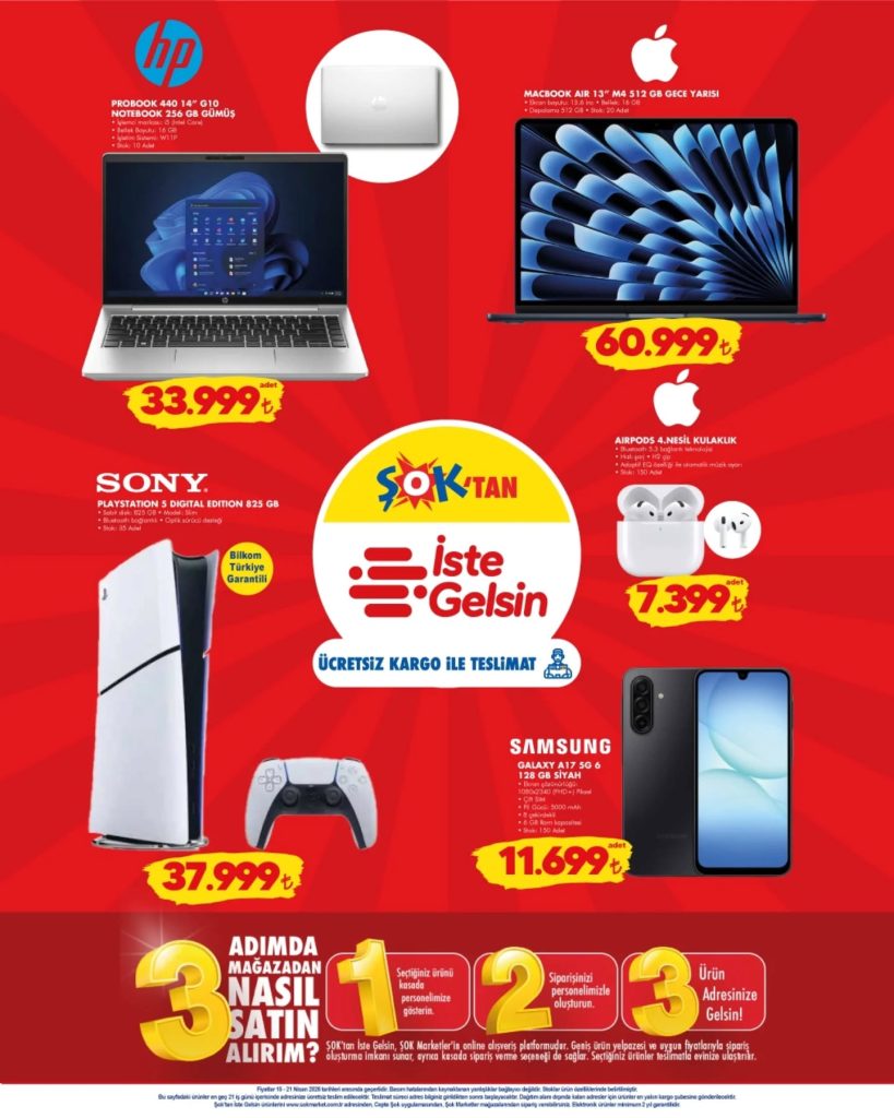 15-21 Nisan 2026 Şok Haftanın Fırsatları! Temel gıda, temizlik, kişisel bakım ürünlerinden dev teknoloji (PS5, MacBook, Samsung) ve klima indirimlerine tüm aktüel listesini inceleyin.
