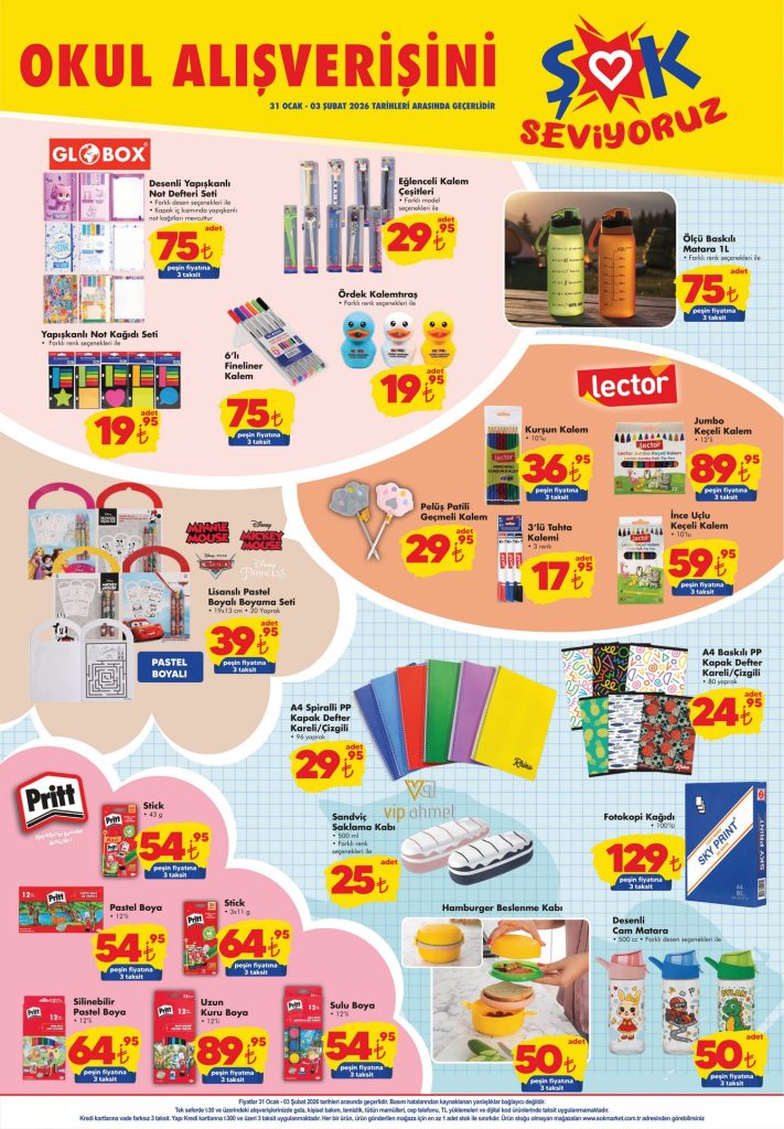 ŞOK Hafta Sonu Fırsatları, 31 Ocak – 3 Şubat 2026 tarihleri arasında tüm ŞOK marketlerde geçerli. Aktüel ürünler broşürü 2 sayfadan oluşmaktadır.