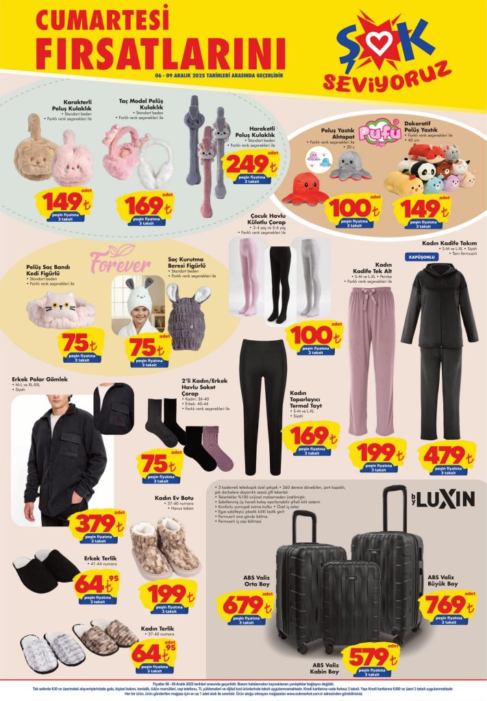ŞOK 6-9 Aralık 2025 hafta sonu kataloğu yayında! Luxin valiz setleri, kışlık peluş giyim ürünleri, Barbie oyuncaklar ve 50 TL üzeri alışverişlerde geçerli kasa arkası indirimlerini hemen inceleyin.