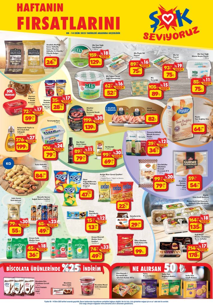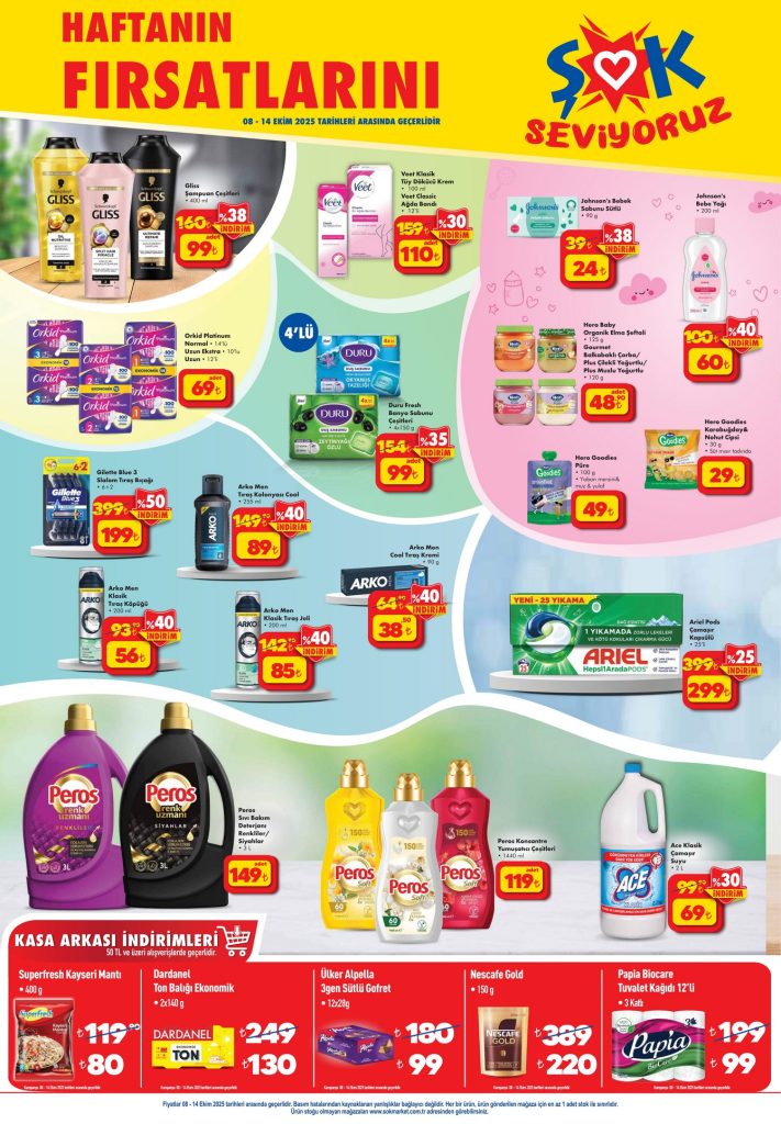 ŞOK Haftanın Fırsatları, 8 Ekim – 14 Ekim 2025 tarihleri arasında tüm ŞOK marketlerde geçerli. Aktüel ürünler broşürü 6 sayfadan oluşmaktadır.
